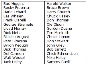 Bruce Gabrielson, Jim Angley, Barry Church, and Sam Dusatko. Max was the first