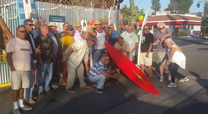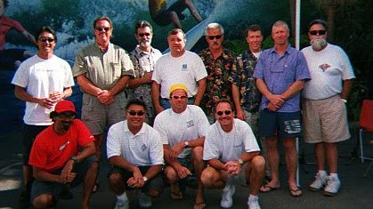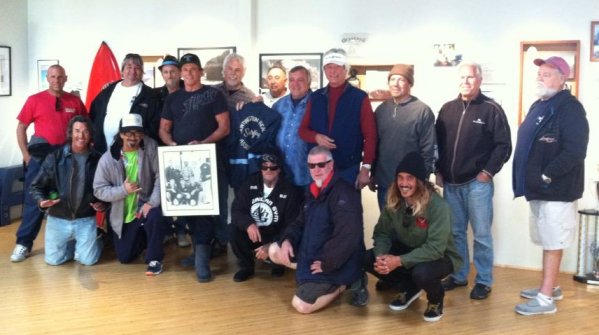 The 40th gathering was at the International Surfing Museum. The original HBSA T-shirt was re-released there. Several of the original founders showed up for the event. The picture below is a group at the event.