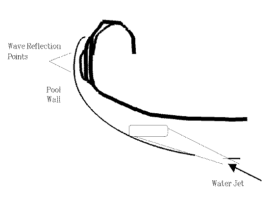 Another possibility of creating a lip is some combination of vertical jets in the wall and a pool wall design which can reflect the generated wave. Wave theory regarding wave reflection is fairly straight forward. The problem is the thickness of the water wall. If it is possible to keep the top of the water wall thick enough to avoid catching a skag on the pool wall, yet thin enough to allow the formation of a standing wave without significant water jet use, than the ultimate wave pool is possible.