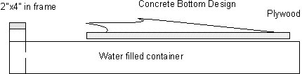 This is what I initially did to look at simple wave shapes and keep my costs down. I built a rectangular water container from plastic. Mine is approximately 2 1/2 ft by 4 1/2 feet so it will fit into the back of a car, but I now feel a better container would be 3 ft by 5 ft. The sides should be at least 8 inches high (8 would be better), and all seems should be thoroughly sealed. This makes an easily transportable pool that can sit on a table.