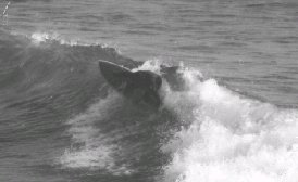 Surfers don't always catch the storm waves. The waves are choppy and have a very short distance between crests. They usually ride shallow water waves. (Bruce Gabrielson pictured below)
