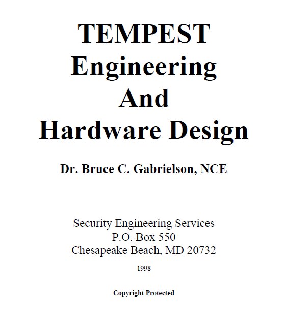 The text presents an overall introduction to classical information theory, basic communications theory, as well as TEMPEST design. Related issues in modulation, telecommunications, telemetry, shielding, and propagation are covered as they apply to TEMPEST control. The theoretical relationships presented form the basis of all TEMPEST testing and test requirements, as well as describing the means of escape for controlled signals from within the TEMPEST protected container.