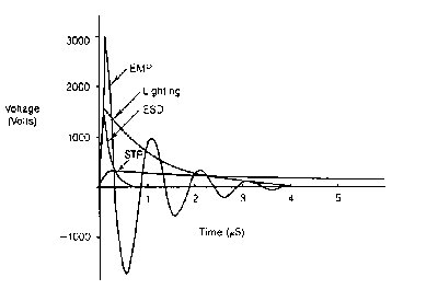In conclusion, although actual generation mechanisms are different, both EMP and lightning result in an electrical pulse threat that can be addressed with similar analysis, test, and circuit protection techniques. Figure 3 shows a comparison of electrical transients for EMP, lightning, ESD, and a standard transient pulse (STP) [6].